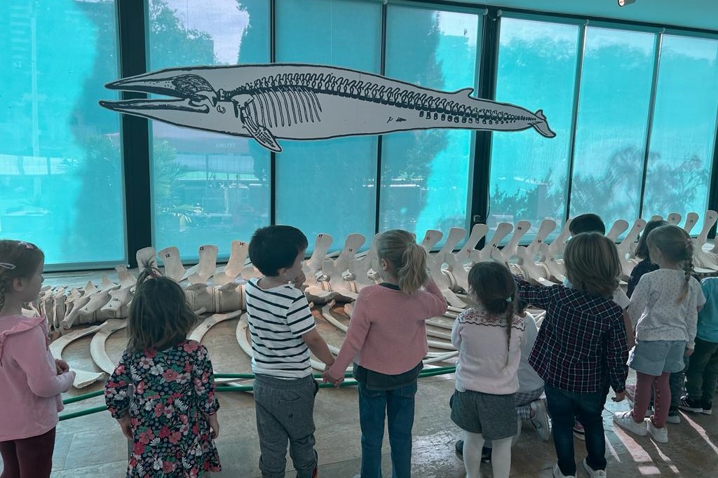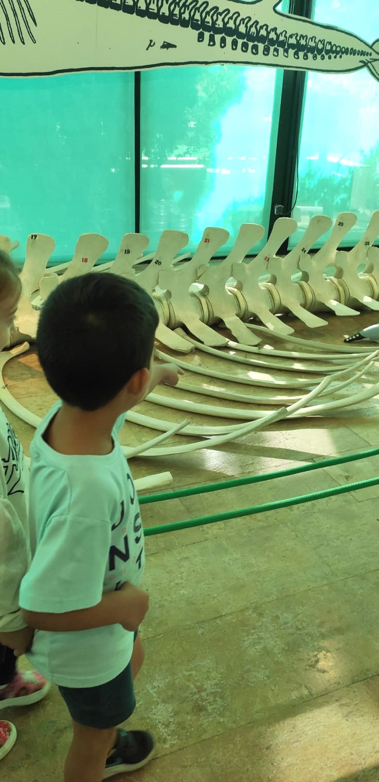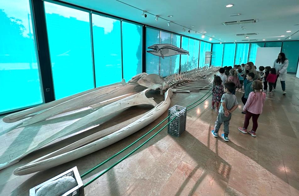 Per a finalitzar la visita, a les granotes ens va emocionar moltíssim poder observar l’esquelet real d’una balena que va quedar encallada a la platja del Perelló l’any 1986.