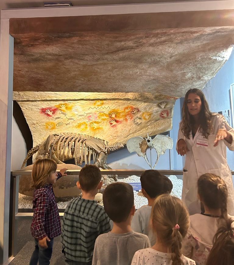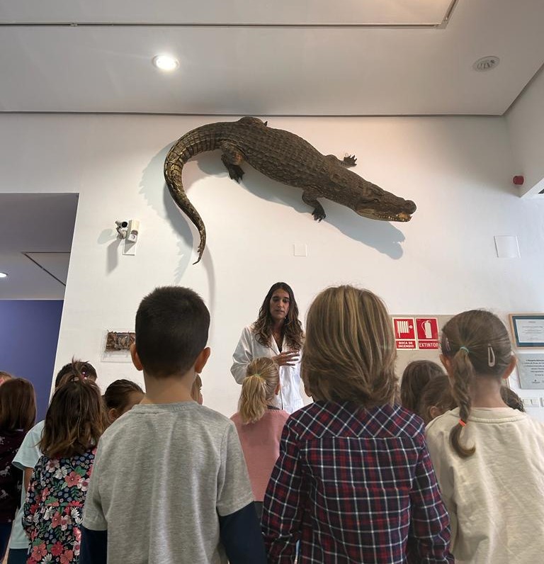 La primera cosa que ens hem trobat ha sigut el famós cocodril gegant que està just en l’entrada. Belén, la nostra guia, ens ha explicat que viuen en llacs, rius o estanys i que utilitzen les seues esmolades dents per a poder alimentar-se d’altres animals. A continuació, hem realitzat un recorregut per diverses sales en les quals s’exposa el naixement de la nostra galàxia, l’evolució humana i gran varietat de minerals fòssils, que ens acosten a conéixer la vida d’alguns animals que ja estan extingits, tant marins com terrestres. Entre ells, els fòssils de les granotes.