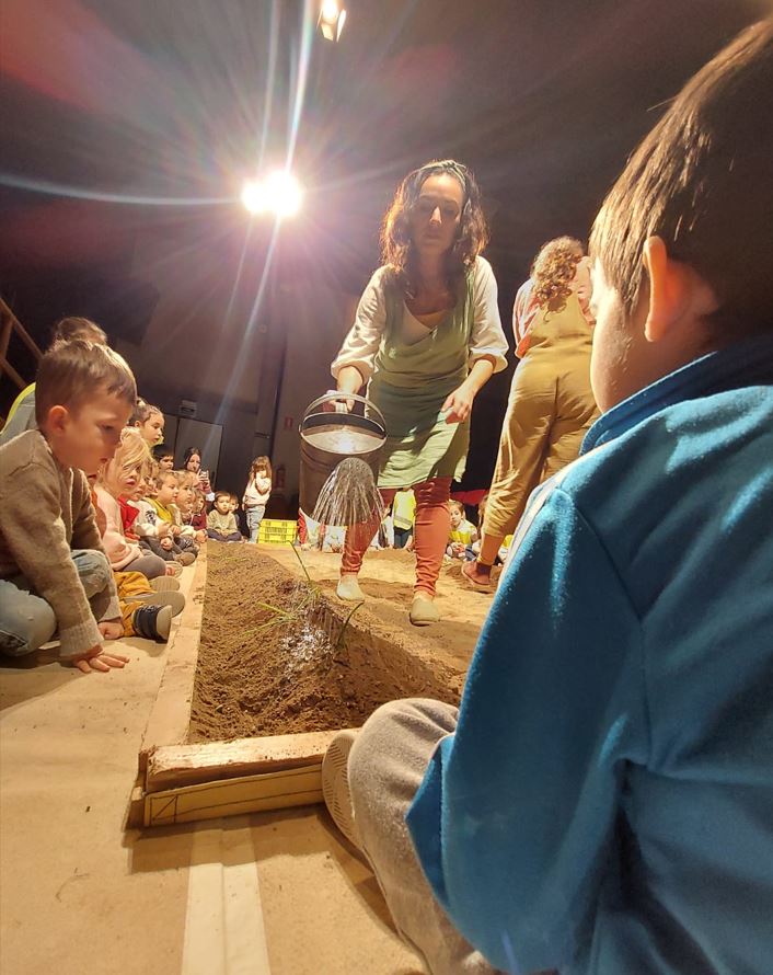 En este espectacle, les nostres protagonistes són dues xiquetes que viuen en un lloc envoltat de terra i pobresa. Treballen i treballen al camp sense descans, en condicions duríssimes que molts adults del nostre món trobarien insuportables. Elles, no obstant això, aconsegueixen sobreviure dia rere dia, exhibint una resiliència poc habitual contra l’adversitat. Potser és perquè el seu món interior, l’univers imaginari on es refugien, els permet fer front al sofriment i la injustícia. Treballen, però també juguen. I en els seus jocs reflecteixen els seus somnis i anhels: una llar i una família.