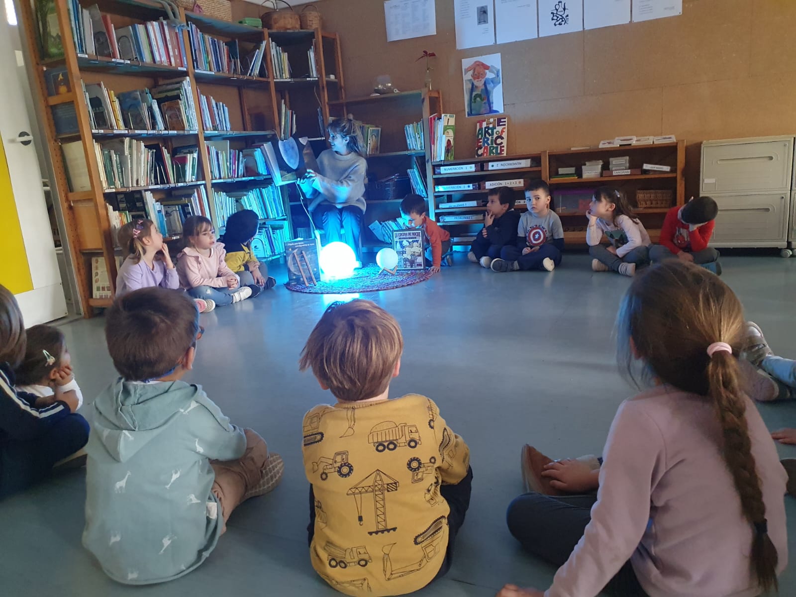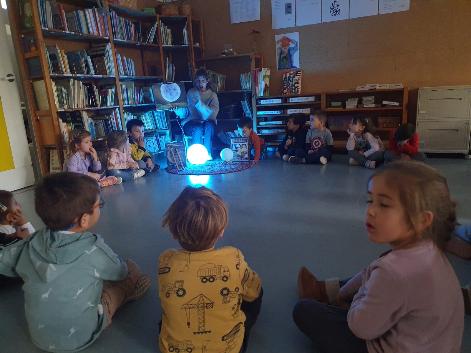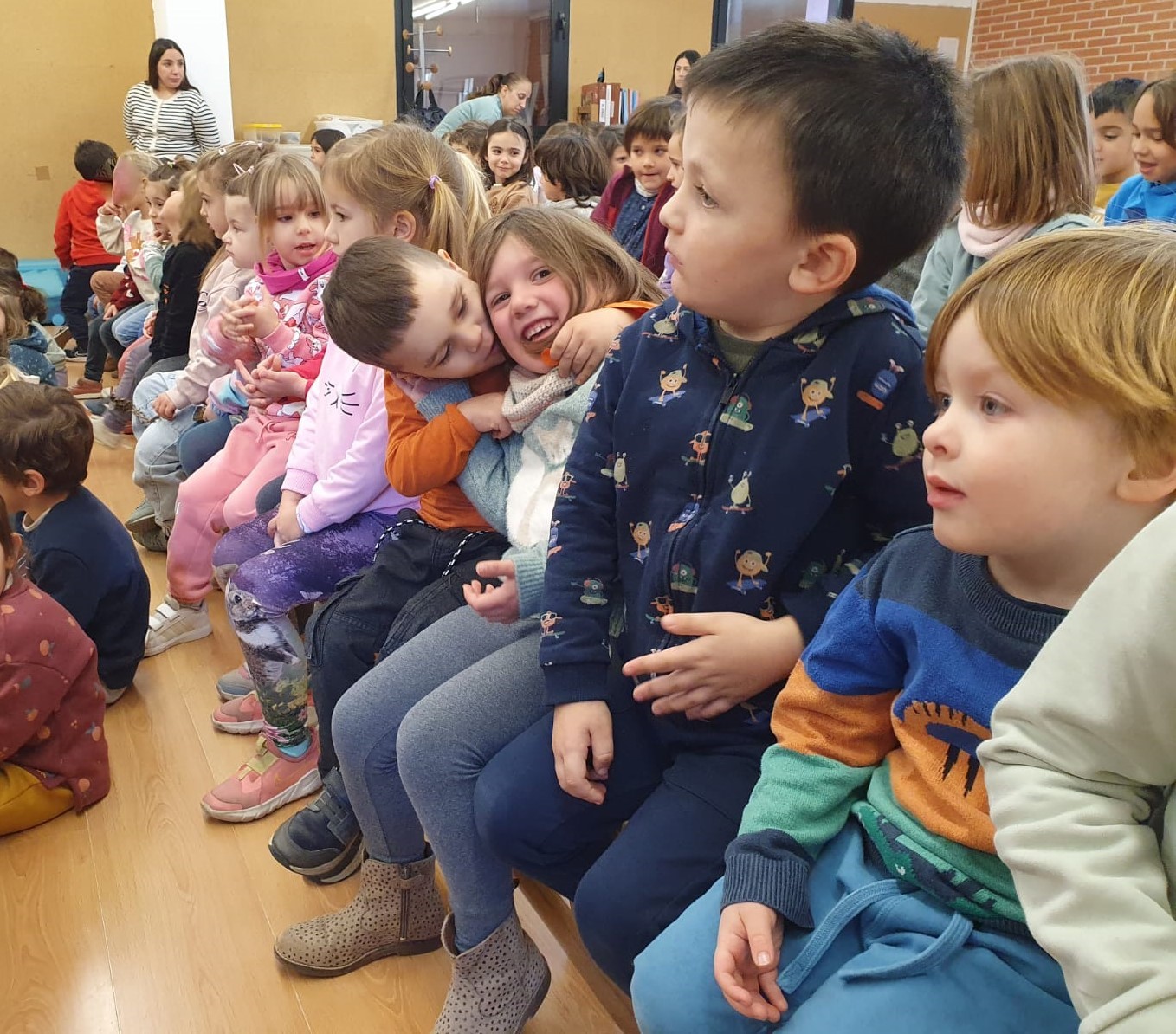 Después, hubo momentos de más actividad en la que los papás y mamás tenían que imitar nuestros gestos, pintar en los lienzos sobre el espacio, realizando movimientos libres, desplazamientos por el aula, girar en parejas, hacer estatuas, etc. Y por último, hubieron momentos para la relajación, el masaje y la complicidad con nuestras familias acompañado de música más tranquila.