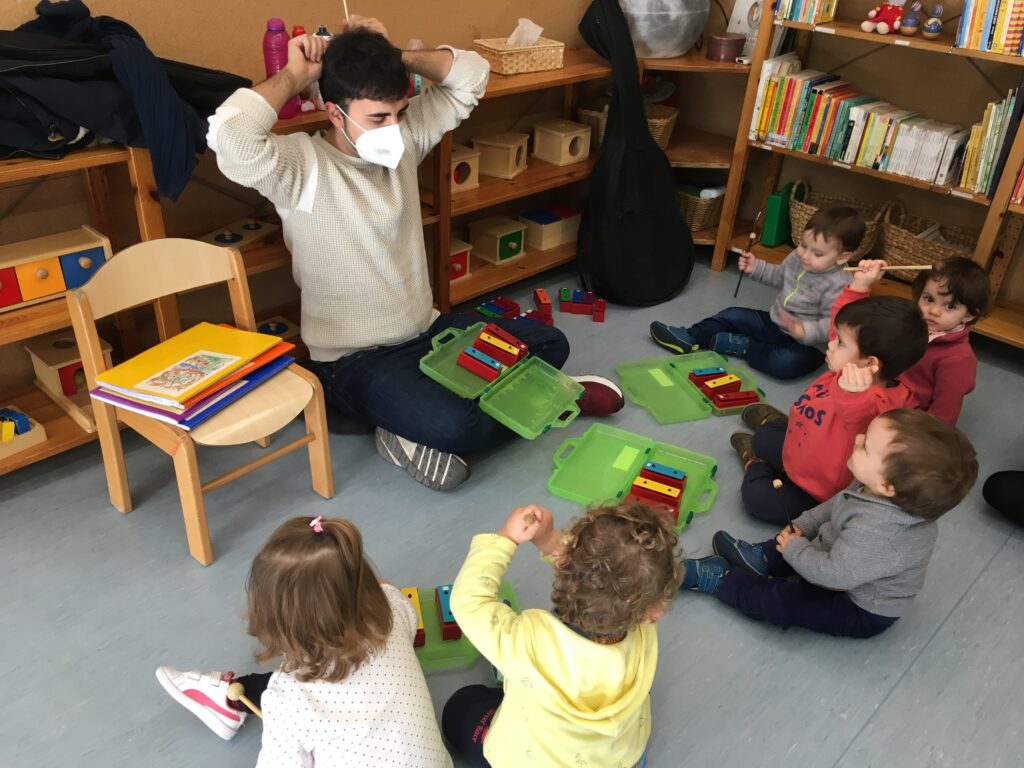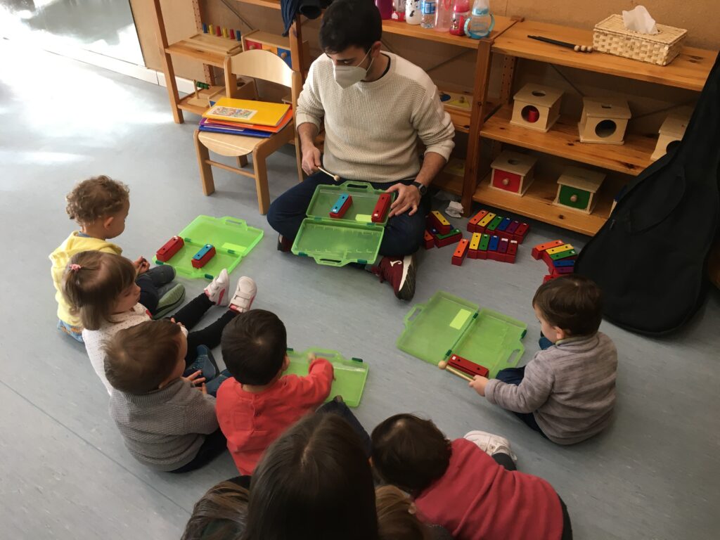 Juan, el nostre mestre de música, ens ha portat aquestos instruments tant sonors per a que practicàrem ritmes amb dues o tres notes (do, mi i sol).