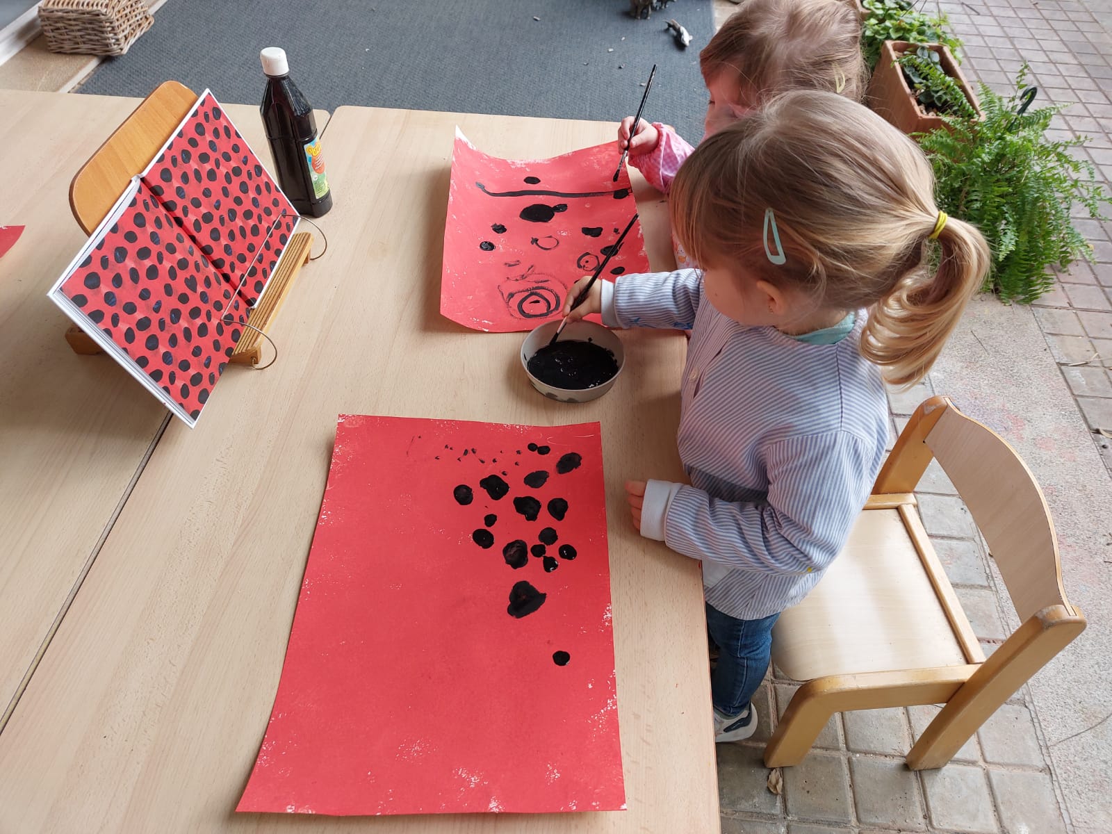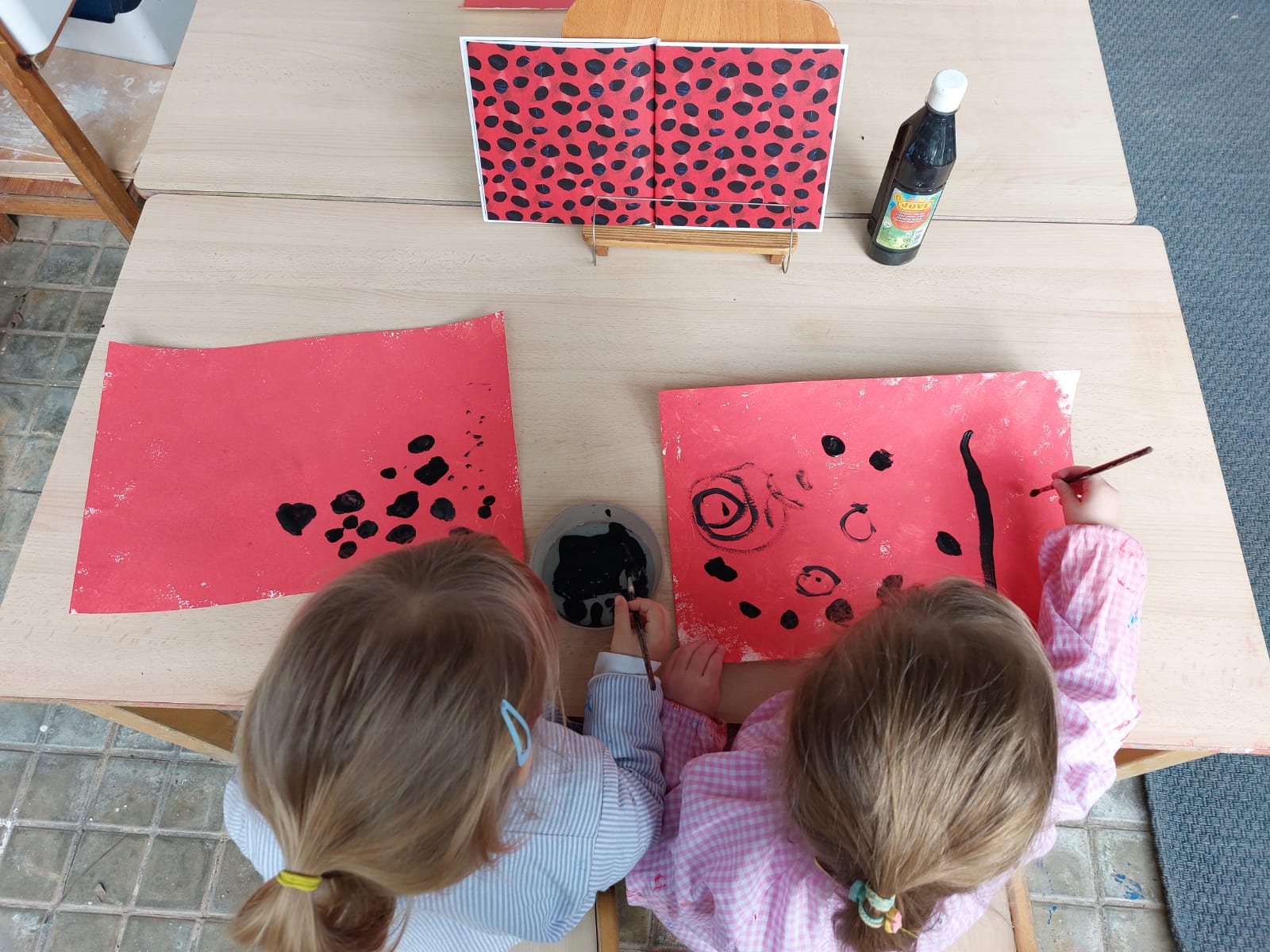 Le interesaba mucho el diseño de las guardas de los libros y a menudo reflejaban algo en ellas, marcando el tono de la historia. Por ello, el Primer Ciclo de Educación Infantil, hemos querido honrar su memoria plasmando sus técnicas artísticas en algunas de sus guardas como: «From head to toe», «Besos y abrazos para la mariquita gruñona», «A house for hermit crab» y «Brown bear, brown bear, what do you see?