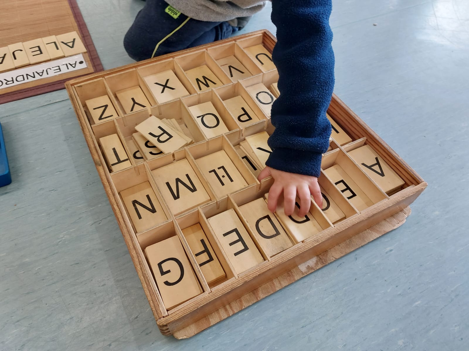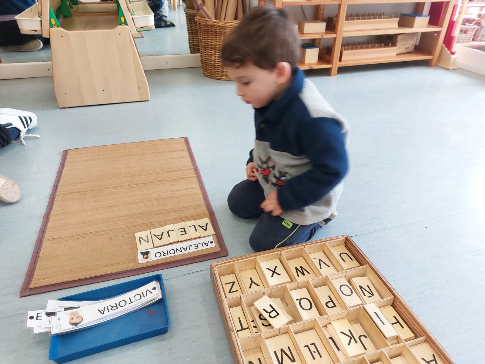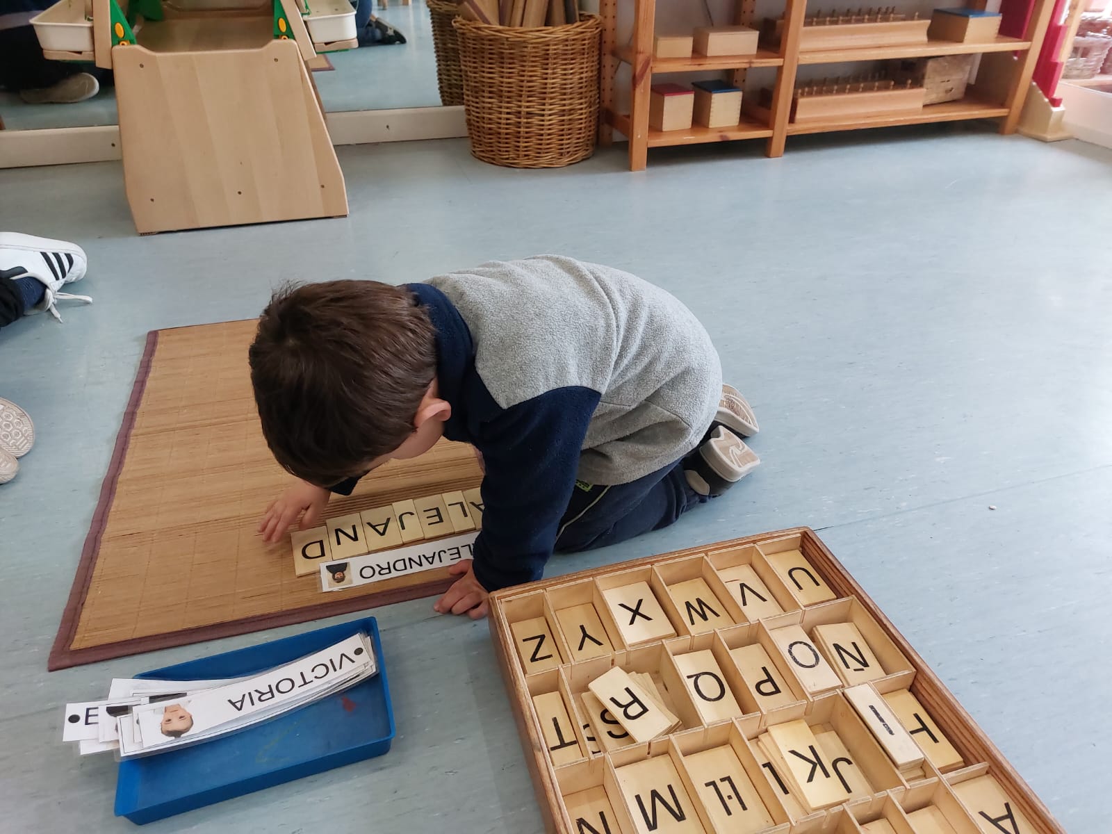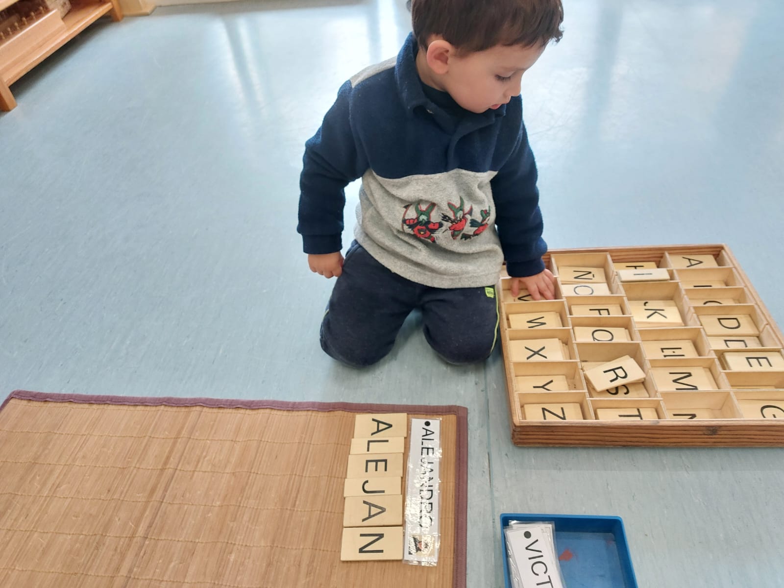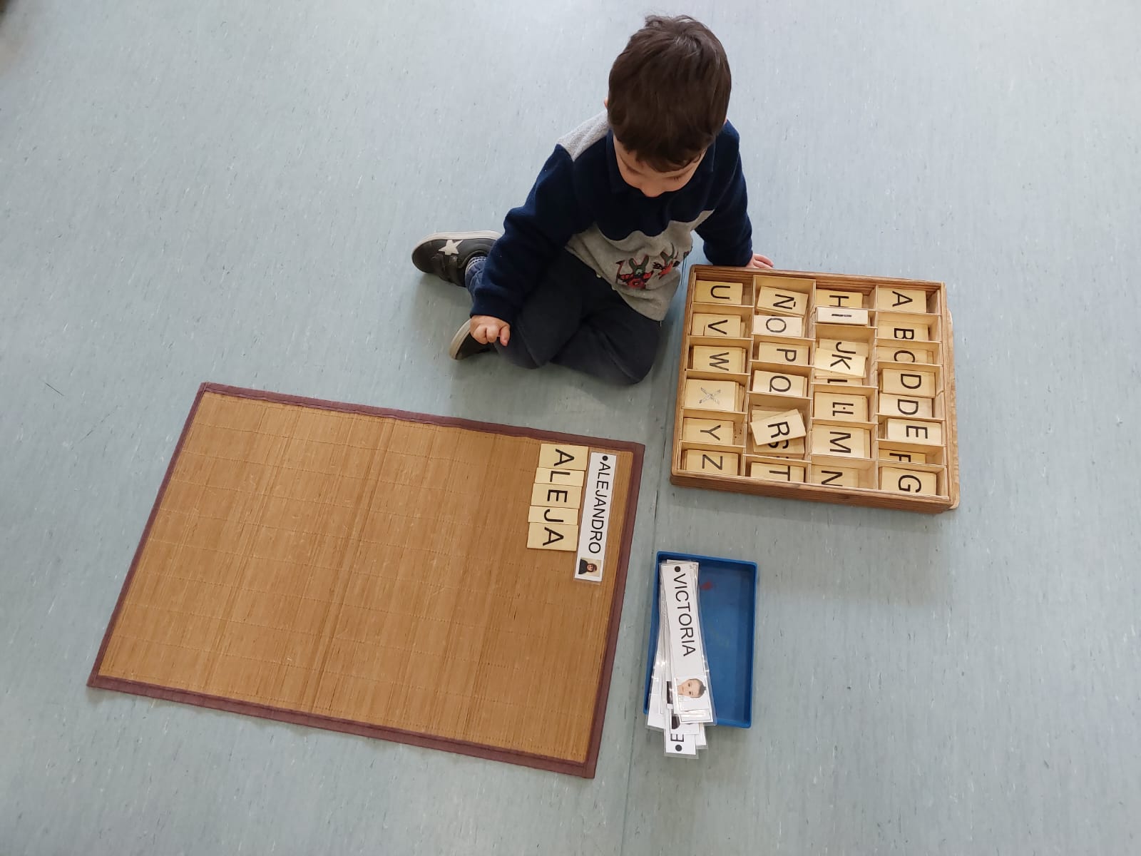 Para acercarnos un poquito más a la lecto-escritura, algunos de nosotros montamos nuestro nombre (o el de nuestros compañeros/as) con el «Abecedario» y así fijarnos en la direccionalidad y posición de cada una de las letras que lo componen.