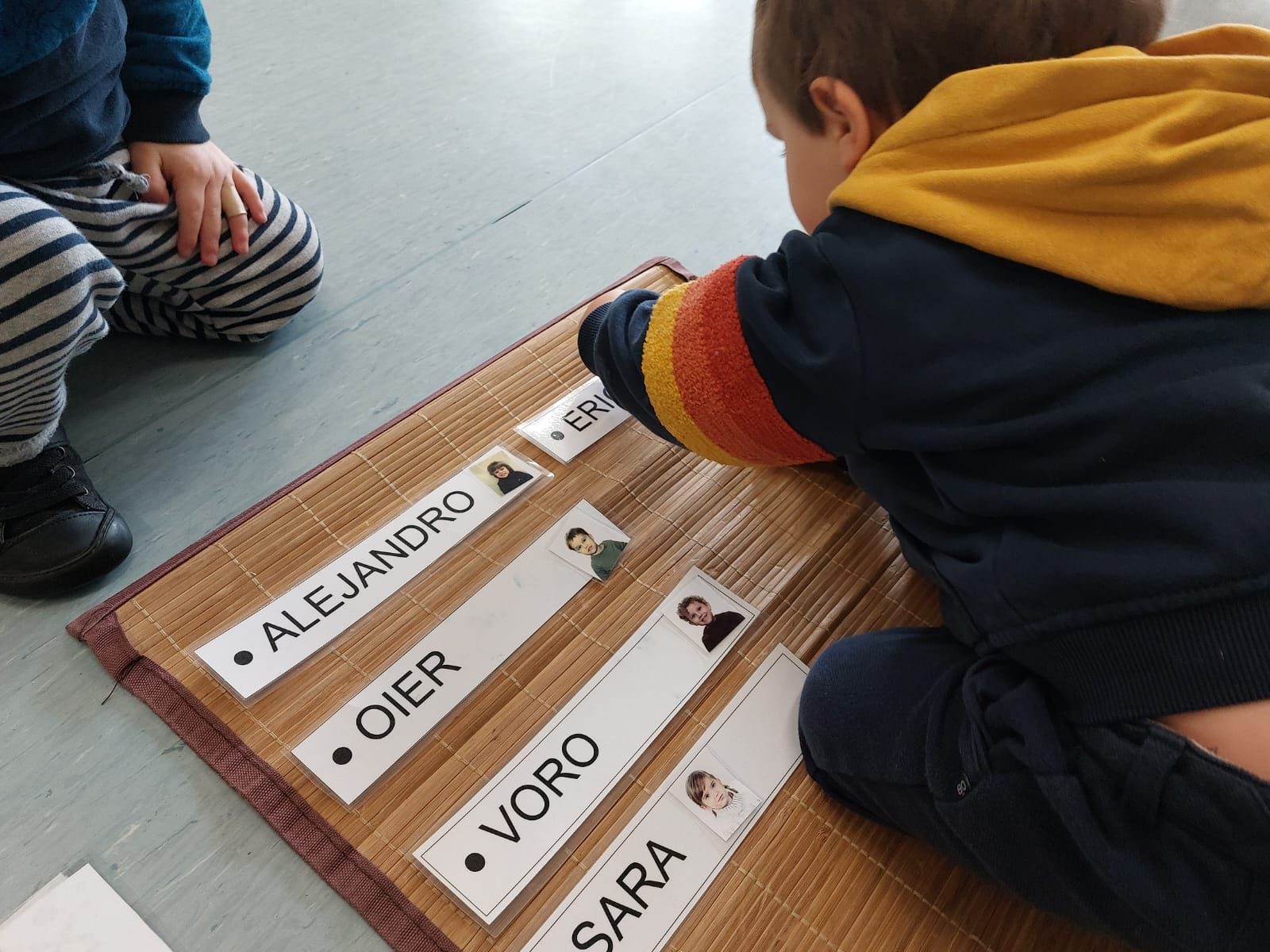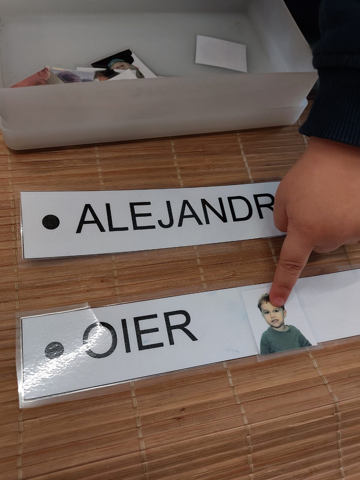 Incluso algunos somos capaces de identificar los nombres de nuestros amigos/as. Un material que nos ayuda mucho a trabajarlo (además del plan individual) son «Los nombres sin foto». Primero, colocamos los nombres de todos nuestros iguales, y posteriormente, ponemos la imagen de cada uno al lado de cada nombre. Y… ¡Voilà!