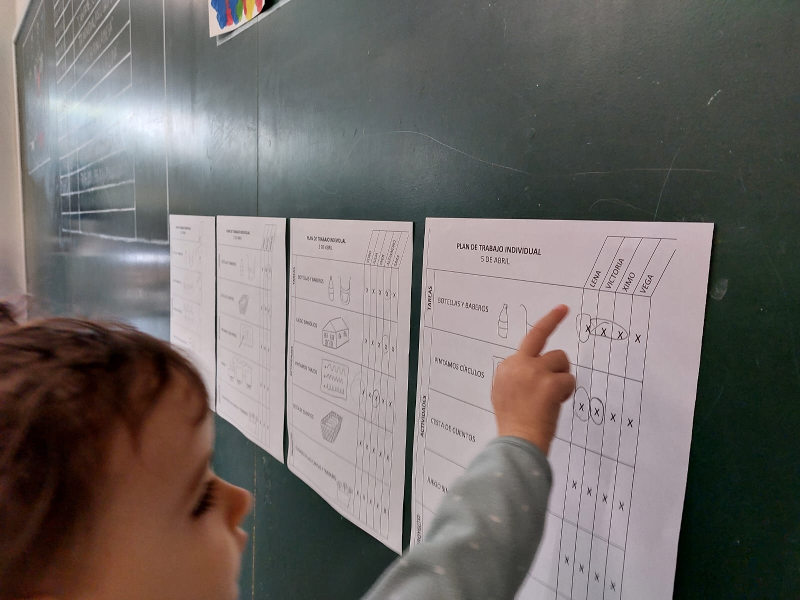 En nuestro plan individual, cada uno de nosotros a la hora de realizar alguna tarea, debe buscar su nombre para así poder rodear con mucho cuidado la actividad que nos toca en ese momento, lo que hace que ganemos mucha autonomía y confianza en nosotros mismos.